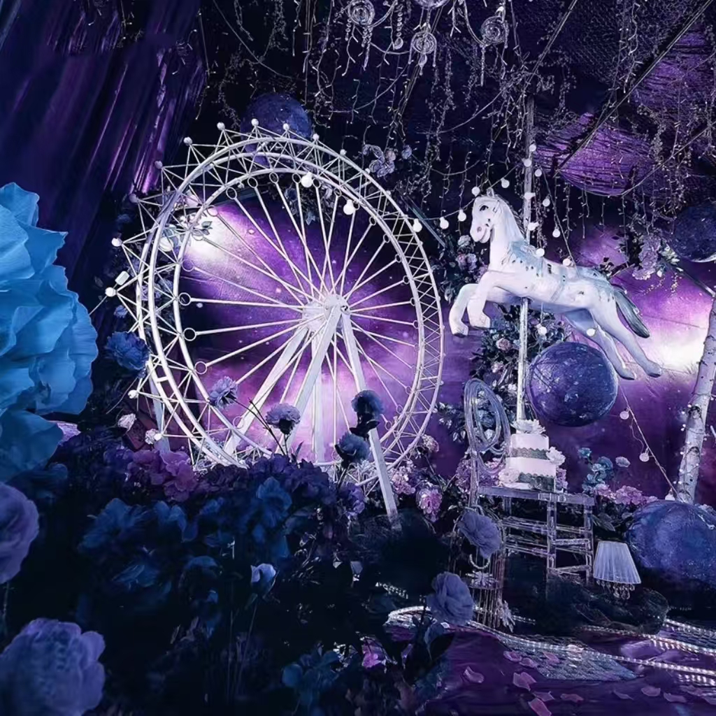 4. Использование продукта: это один из предметов реквизита, используемого в реквизите для свадебной сцены, который может сделать сцену свадебного зала более живой и яркой. Широко используется в свадебных торжествах, сценических аксессуарах, садовых пейзажах и на открытом воздухе. Его также можно использовать в качестве украшения сцены и реквизита для фотографий; обычно используется в цветочных свадебных залах в качестве сценического фона для создания романтического и уютного детского праздника.